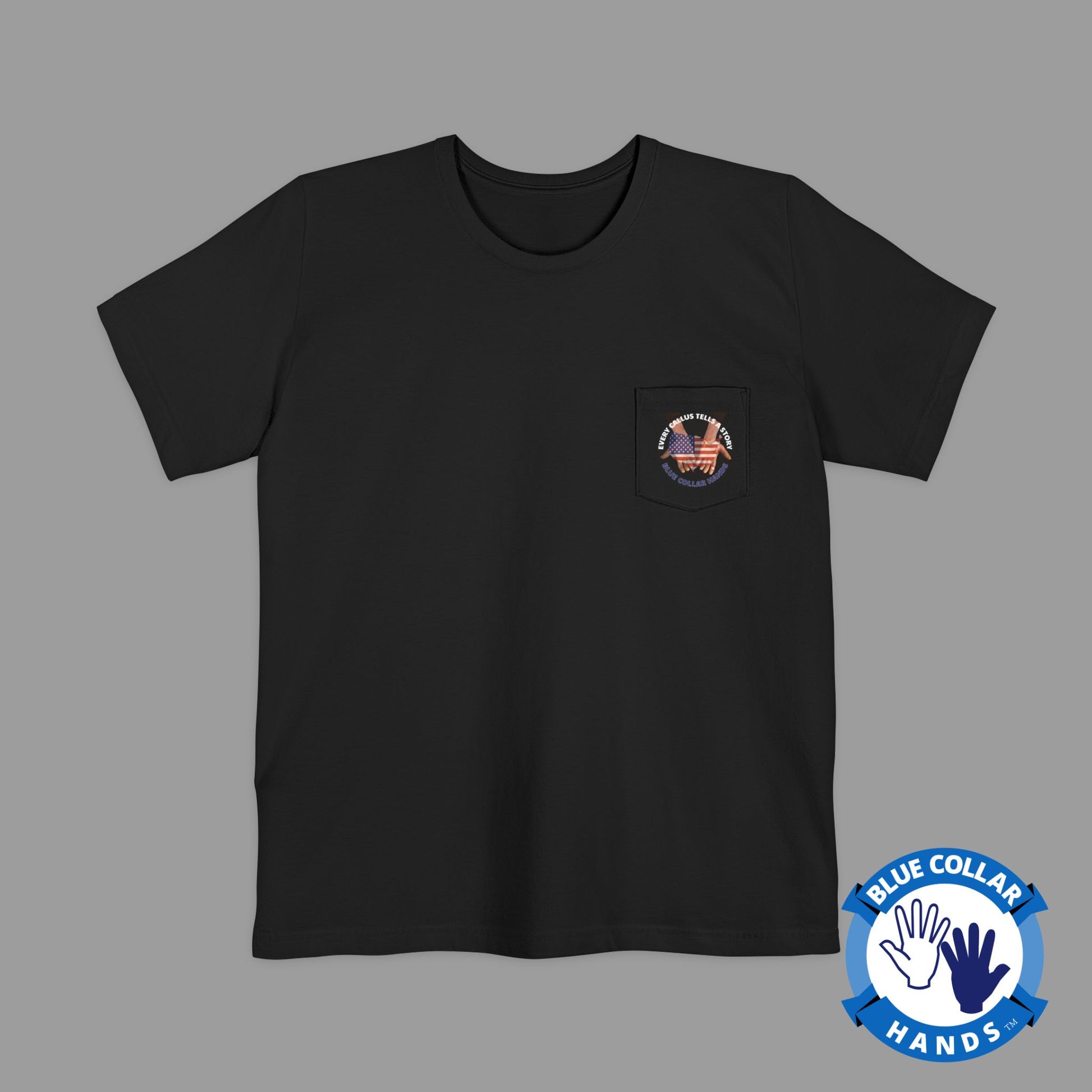 Celebrate the hard work of blue collar workers with this unisex Pocket T-shirt. Each callus tells a story, giving a rugged and hardworking vibe to the wearer. Perfect for those who appreciate the value of hard work and dedication. Ideal for Labor Day, construction workers, mechanics, and anyone who respects manual labor.